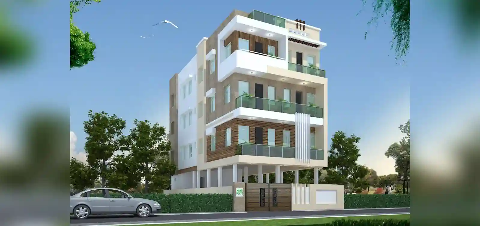 A 10,300 sq. ft. residential apartment complex with 1, 2 and 3 BHK units on upper floors for rental purposes. The ground floor was designed as the client’s private residence with full modern facilities.